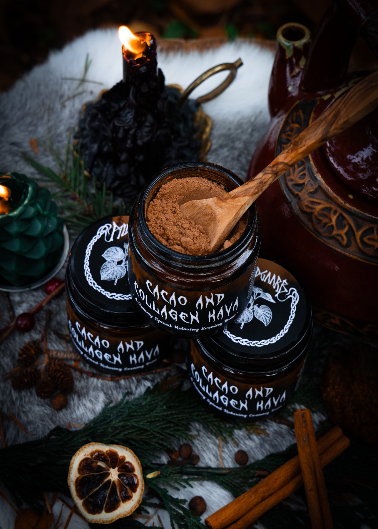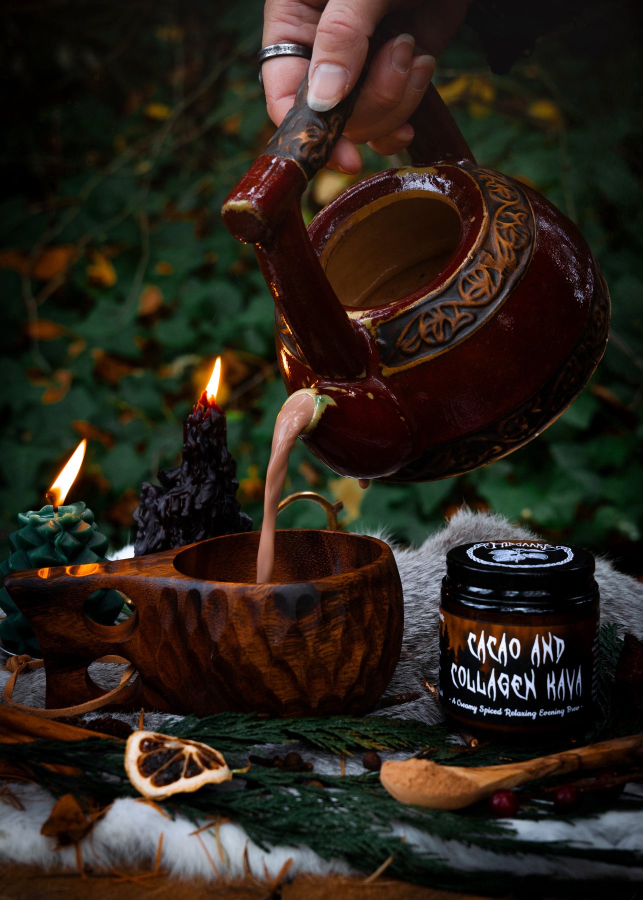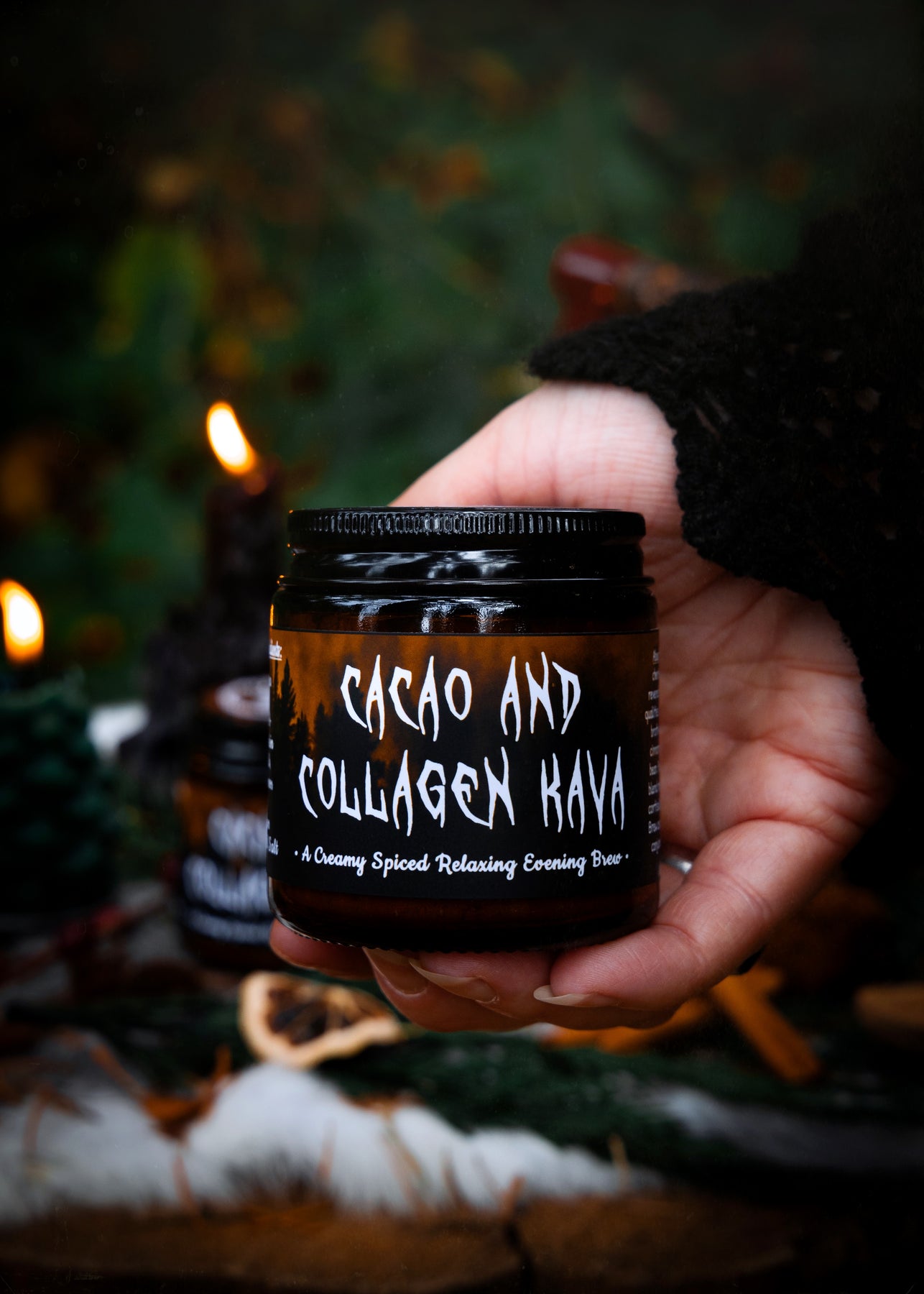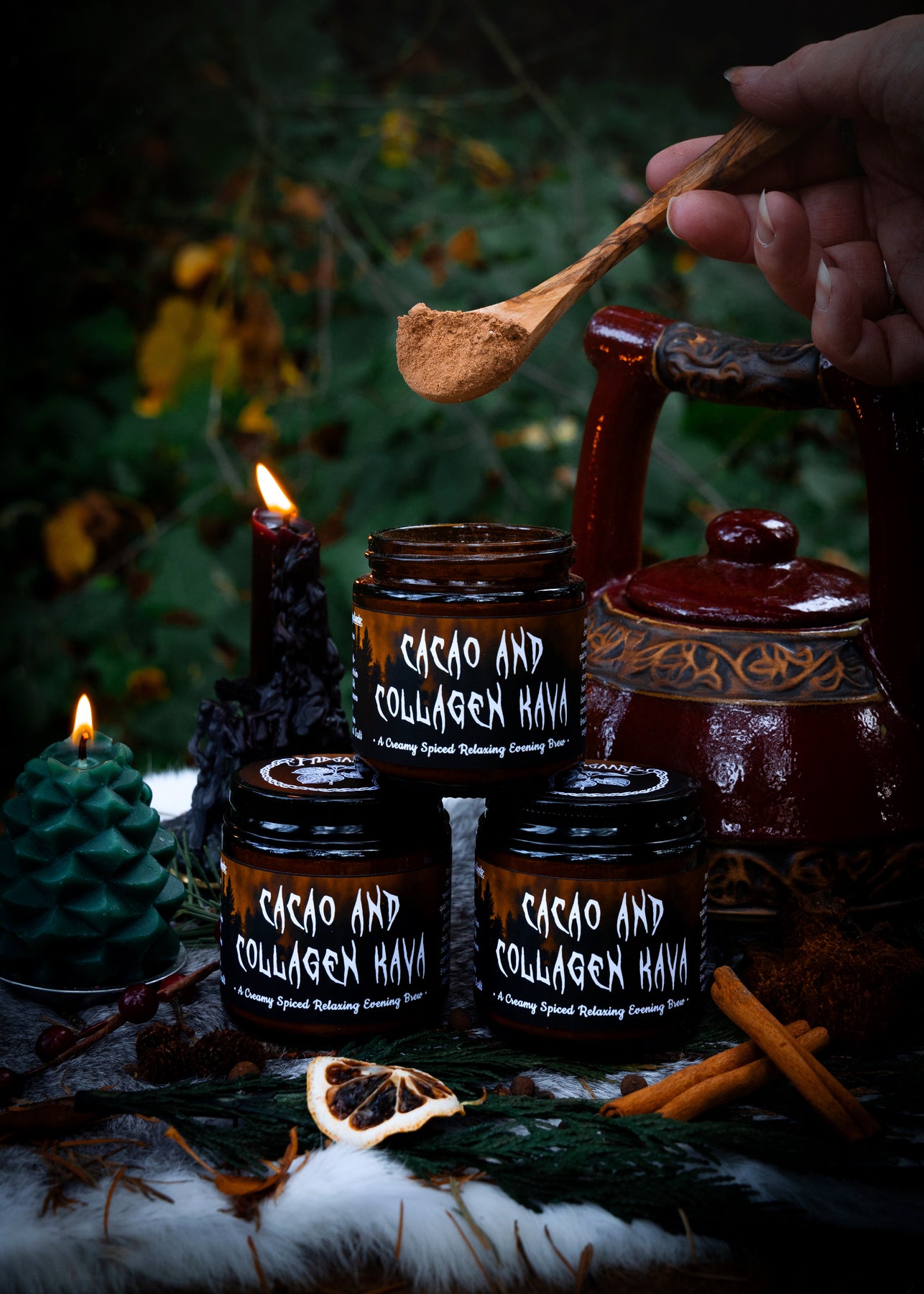 • CACAO AND COLLAGEN KAVA • A creamy spiced relaxing evening brew •