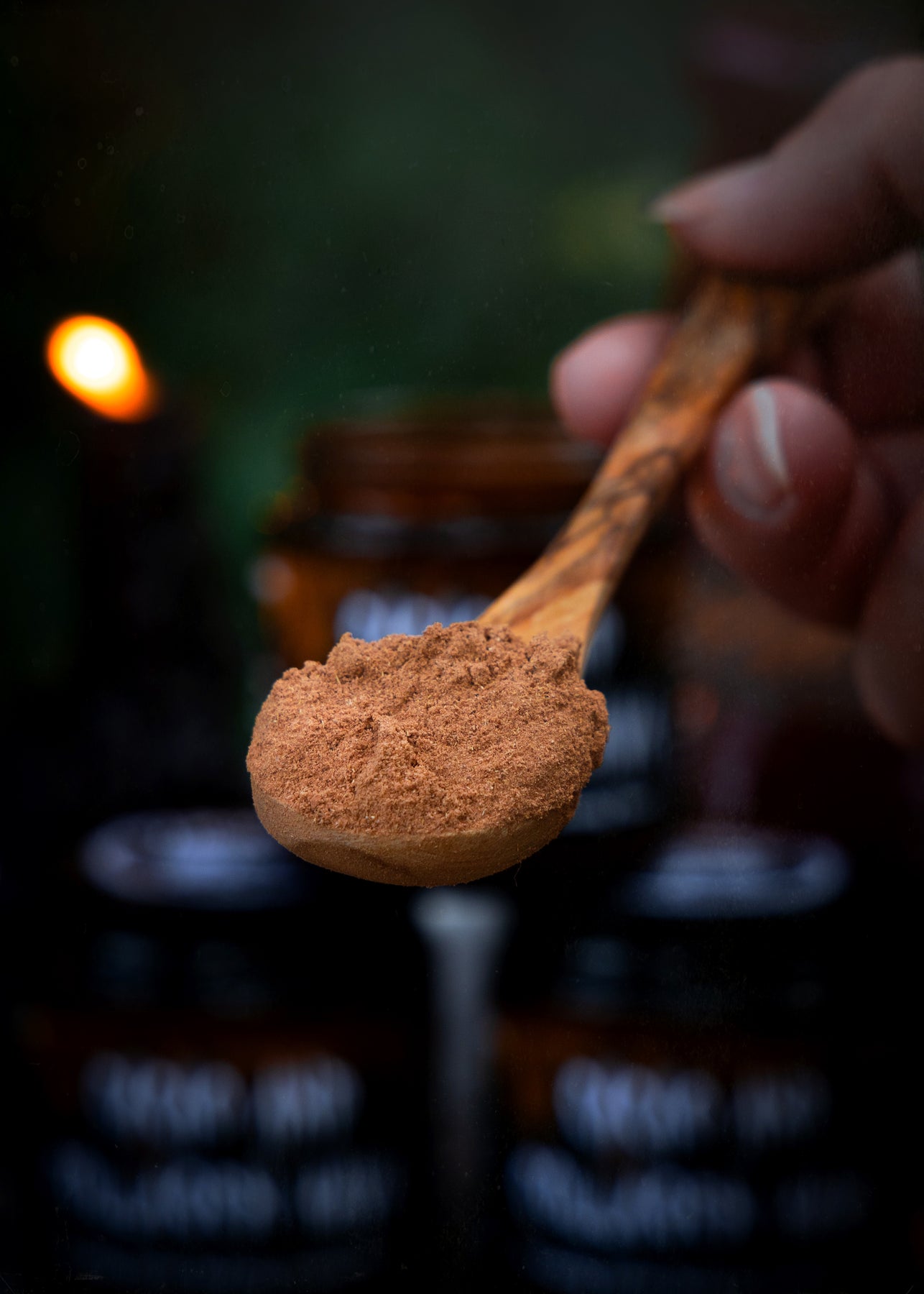 My grandmother always put us grandkids to bed every night with warm mug of chocolate milk. For me, this brew is truly a goodnight hug from within. A remembrance of childhood. A brew to honor the wisdom of these relaxing ceremonial herbs and their ancient cultures.