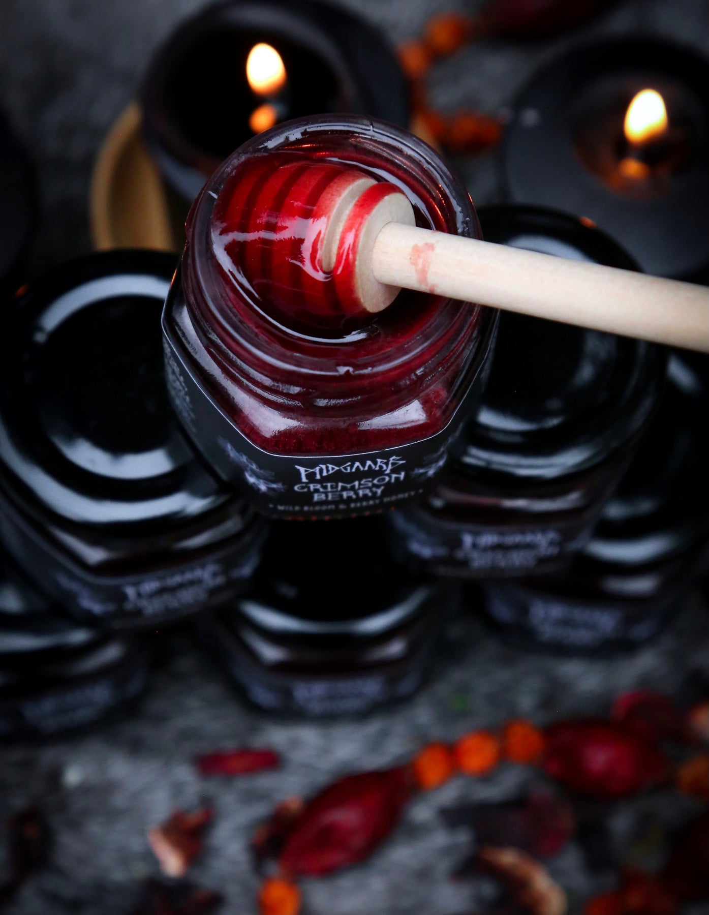 🌲 CRIMSON BERRY• The romantic, gorgeous deep crimson color of this honey is what happens when powerful heart allies of Schisandra Berries, Hibiscus Blooms, Wild Rose Hips & Rose Petals slow infuse into raw PNW mountain honey. These wild blooms & berries are packed with antioxidants & Vitamin C, they are adaptogens that help balance hormones while supporting the immune, circulatory & nervous systems. The sweet & tangy flavors give this offering so many creative uses in the kitchen, easy to weave into baking or used as a fruit spread! I love brewing a spoonful of this honey into an instant tea, or even taken straight out of the jar as a supportive ally. They are also amazing at supporting the skin & this honey can even be used as a face mask or spot treatment. Take in the support of these heart allies and enjoy! Read all about this offering in the individual listing - CLICK HERE