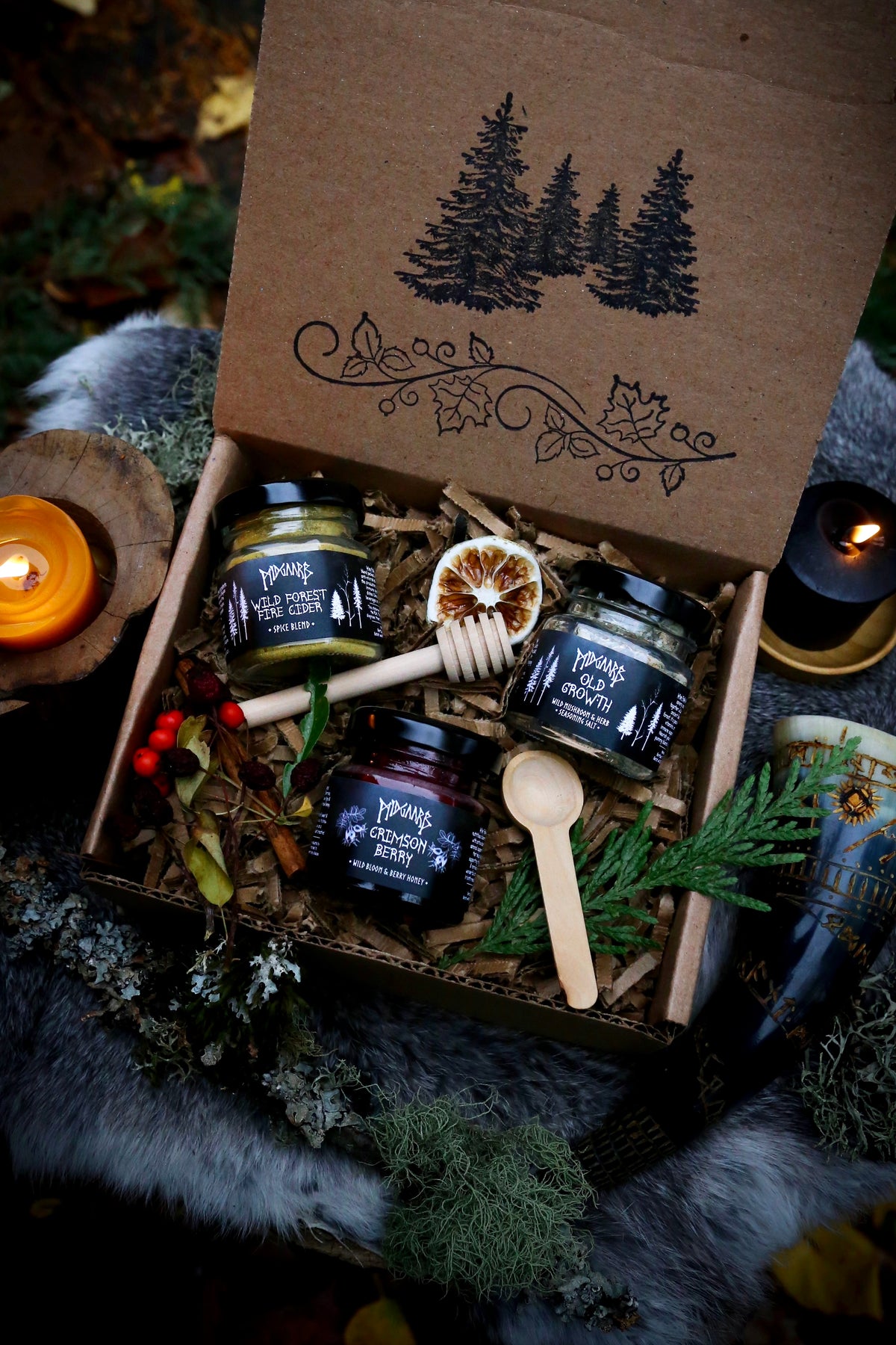 There is something deeply magical about a kitchen bustling with flavors and scents during the holiday season. This giftset is crafted with intention for holiday cooking and perfect for any Kitchen Witch! It is a specially curated box full of delicious and extremely versatile herbal spice, honey and salt blends, proving so many creative kitchen endeavors to explore with. Best part is they are also all deeply medicinal!
