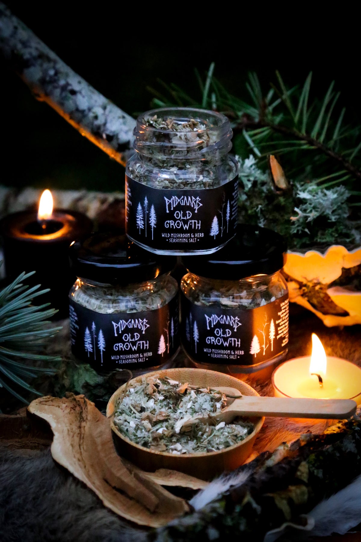 🌲 OLD GROWTH • Wild Mushroom & Herb Seasoning Salt • This nutritious, savory seasoning salt brings together wild offerings from the ancient Sea to the Old Growth rainforest. Celtic Sea Salt, Oregon Coast Sea Salt & Red Rock ancient mineral salt join mineral rich Douglas Fir tips & Blue Spruce tips I wildcrafted in the springtime. A wild mix of Nettle leaf & seed join anti-inflammatory, immunomodulating Shiitake mushrooms & Oregon Reishi ground up along with homegrown Organic Thyme, Rosemary & Garlic. This salt is packed with delicious Umami flavor as well as medicinal benefits. It can be added into almost anything, the options are endless. Some favorites are into soups, sprinkled onto chicken, rice, or on a crispy piece of buttery bread. Yum. Read all about this offering in the individual listing - CLICK HERE