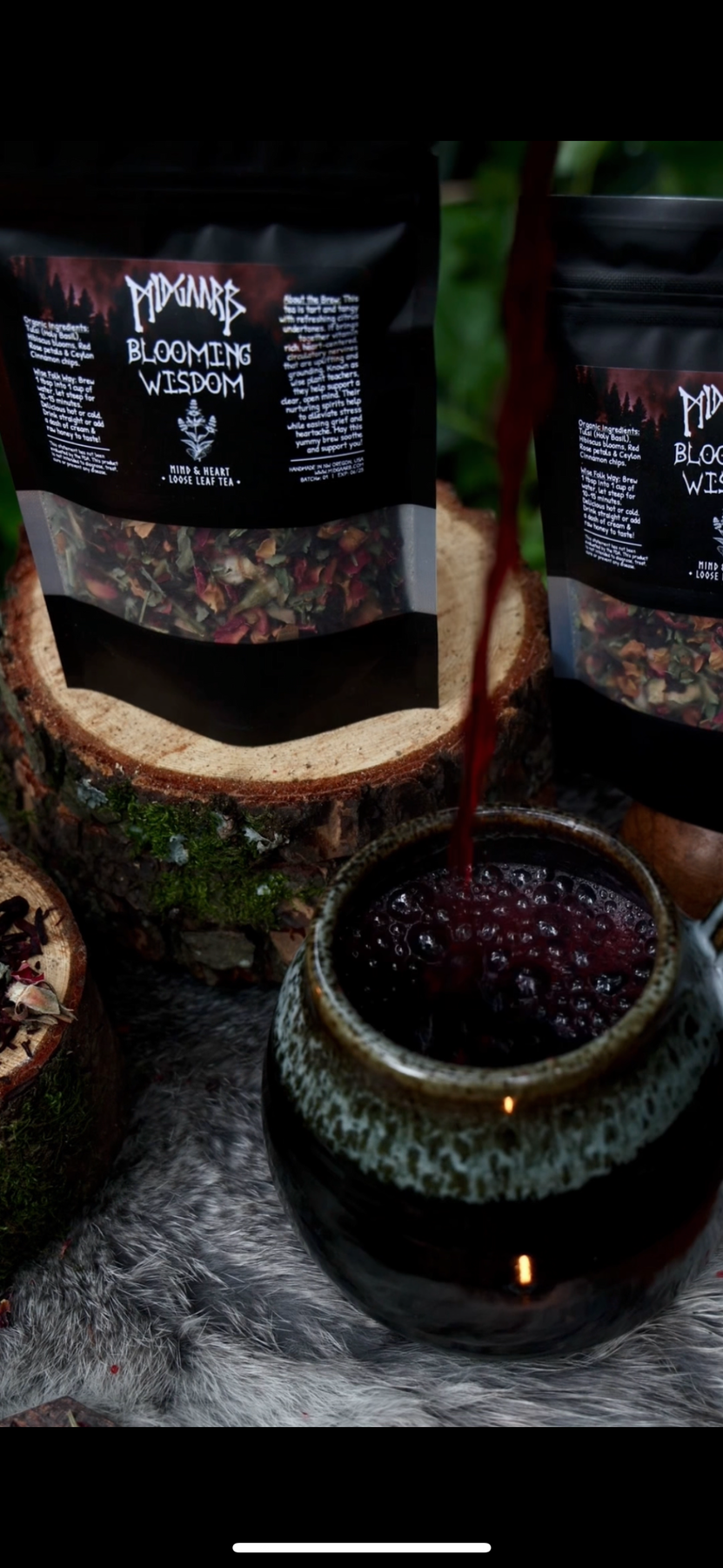 🌲 BLOOMING WISDOM ~ This tea is our top selling offering to date. It is a delicious loose leaf tea crafted to help us feel deeply nourished. This brew is a "rich, medicinal lemonade" as a friend stated after sipping it over ice. And another friend said it tasted like an alcohol-free Mulled Wine when served hot! Tart & tangy, with peppery floral notes & citrus undertones ~ These heart-centered blooms are circulatory nervines packed with vitamins. They conjure up a sense of romance & comfort with their deep red color. Click here for the full size