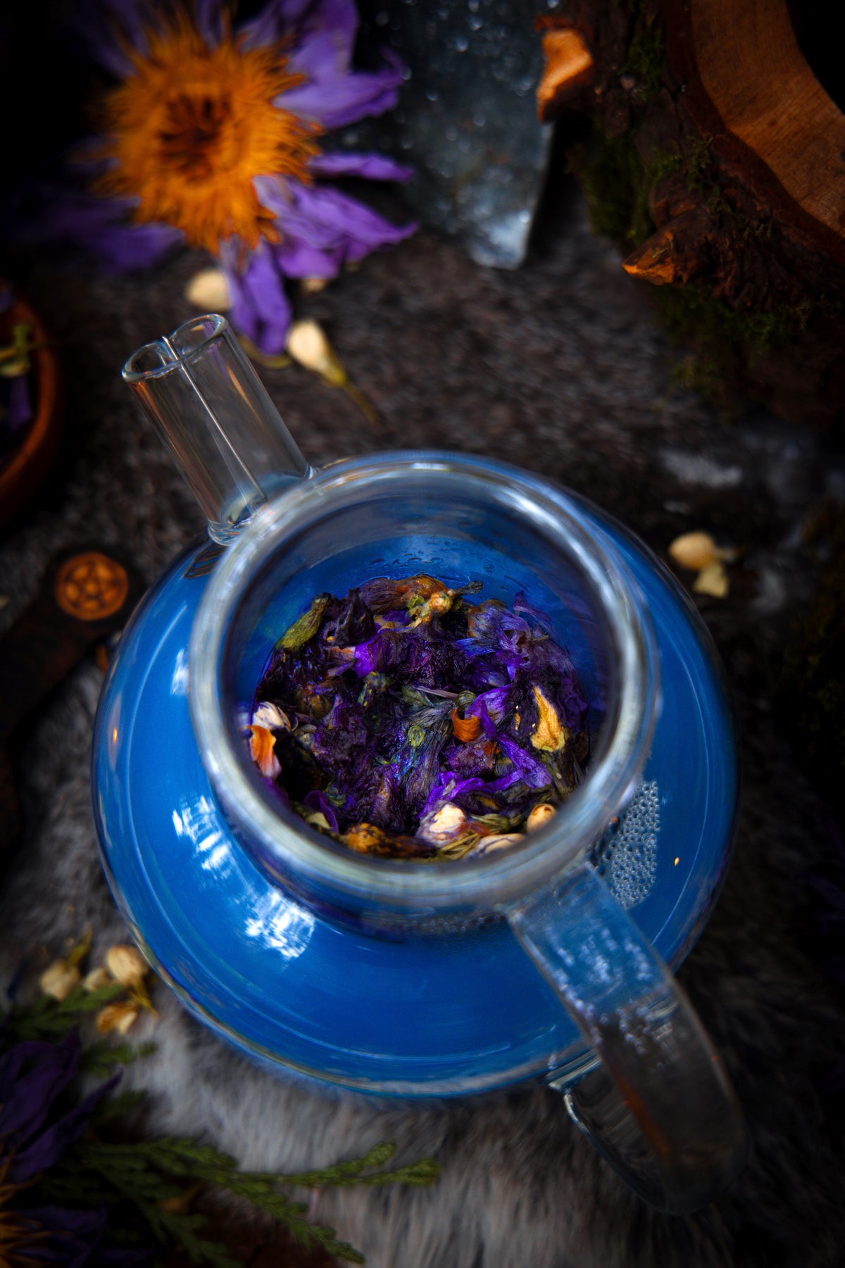 🌲 WE DRAW OUR MAGIC DOWN ~ Inspired by We Draw Our Magic Down elixir, these powerful aphrodisiac blooms in this brew are known to conjure desire with ease & flow, while unlocking deep shadows of the subconscious. She’s here to ground us while helping relieve feelings of anxiety through complete relaxation, peace & euphoria: Taking power from the Moon, allowing us to *draw down* our truest inner magic. This tea is lovely before bed, before ritual, for self care, or simply when you want to conjure a calming yet uplifting energy and tune into your center. Click here for the full size