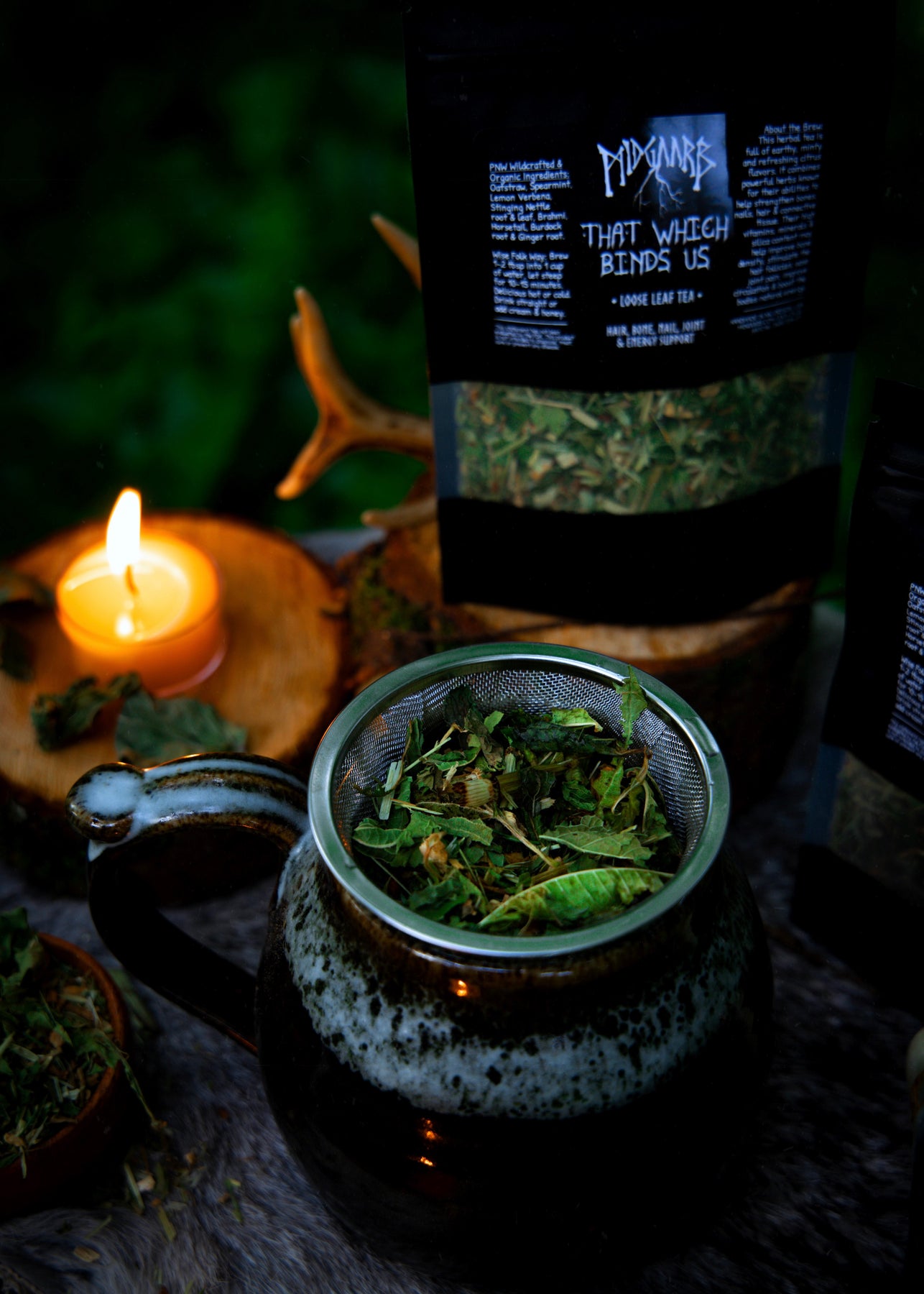 🌲 THAT WHICH BINDS US ~ This tea combines powerful wildcrafted & organic herbs known for their abilities to help strengthen bones, nails, hair, joints, connective tissue & support our body’s natural energy. With DHT blocking properties, high vitamins, minerals & silica content, this brew aims to help improve bone density, stimulate the hair follicles, combat fatigue, ease joint pain & improve circulation. Click here for full size