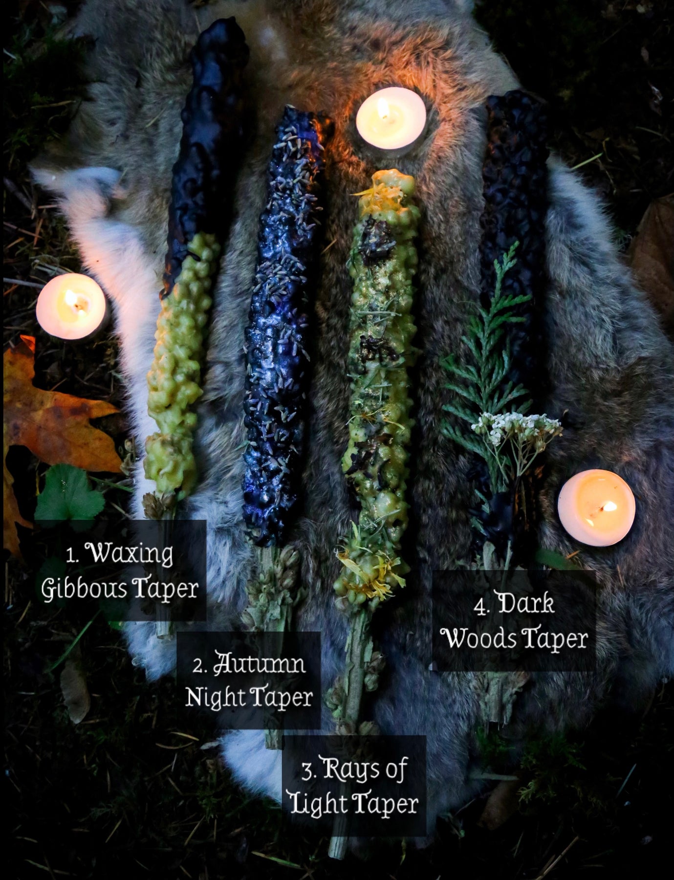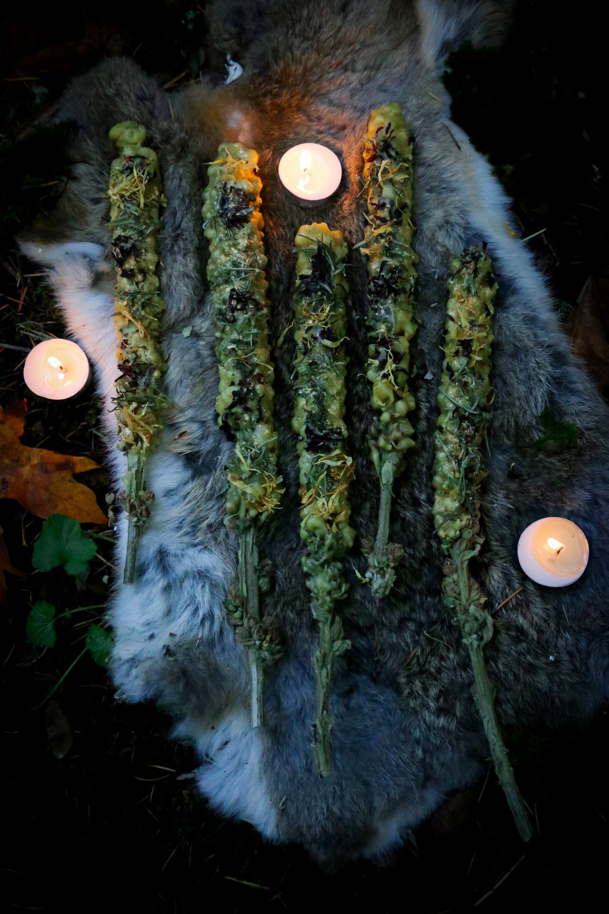 The process of crafting these into fruition takes a lot of meditative time; they are infused with love & deep intention. I made a small batch of each that I hope will find their way onto sacred altars, lit during seasonal ceremony or as a gift for a loved one. These tapers make the perfect tool for Samhain rituals and spells, to commune and ask guidance from ancestors and spirits while the veil is thin.
